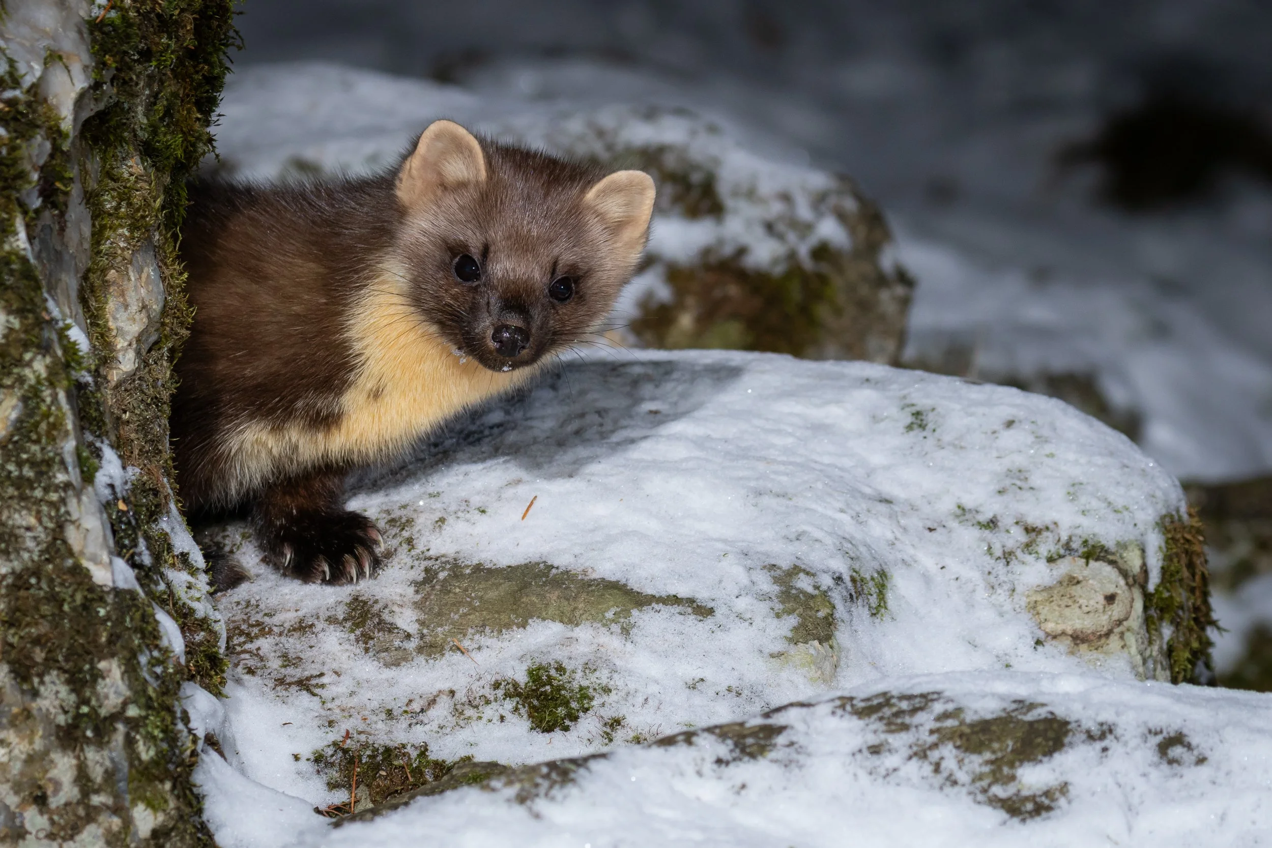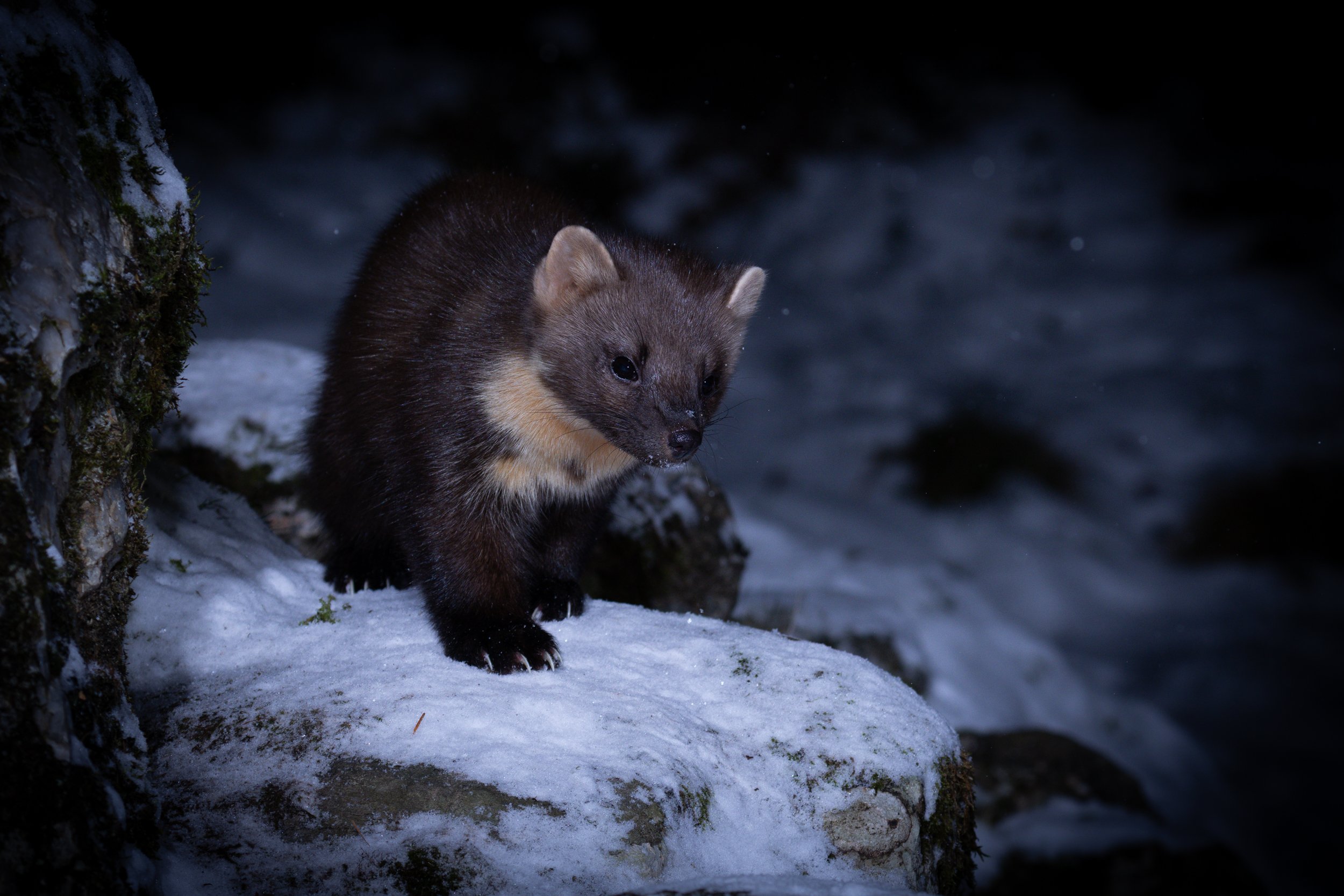Once dark had set in we settled in for another few hours hoping for Pine Martens in the snow! We weren’t disappointed either with 4 visits! The Pine Marten has fast become one of my favourite animals. Before I started wildlife photography I didn’t even know what a Pine Marten was! Alas, shots in the bag I was a happy bunny. Finally I had managed to take shots of the Red Squirrel in the snow!