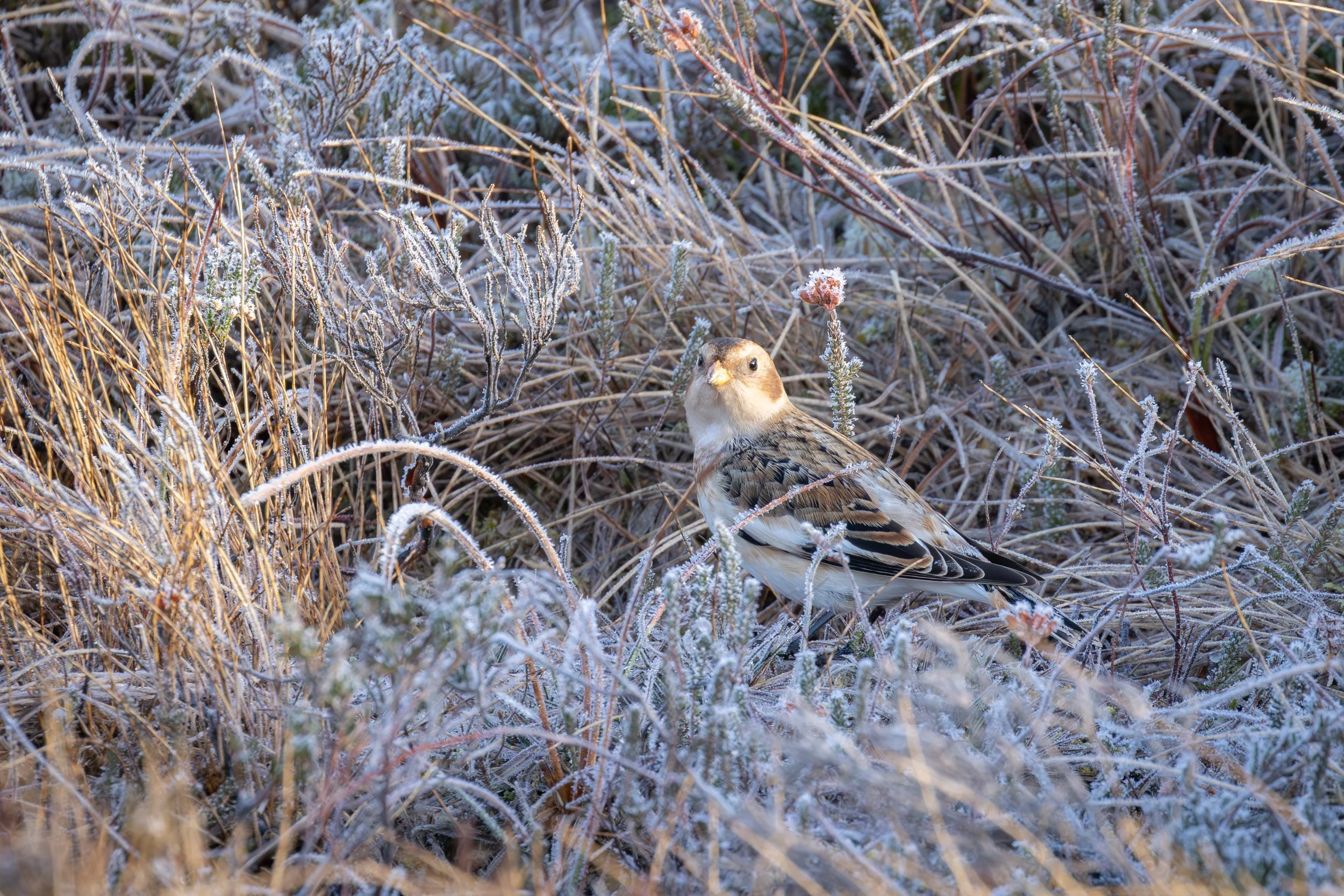 In the winter, Mountain Hares and Ptarmigan turn white to blend into the habitat. So they tend to go where the snow is to stay inconspicuous to any passing Golden Eagles! So while I was unsuccessful with those species, a nice consolation prize was a Snow Bunting. These tend to hang around near the ski resort car park but disperse in the winter. Luckily one at least was still kicking about!